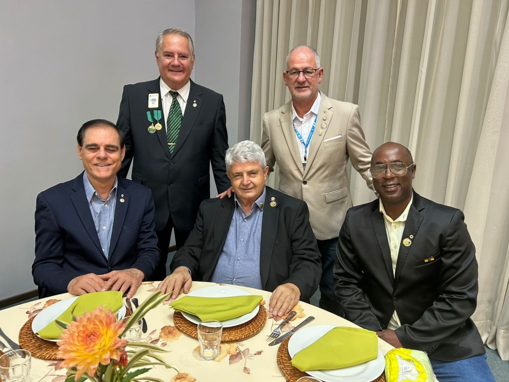 CONSELHO DE GOVERNADORES – Dias 7 e 8 de fevereiro, Luís Antônio Avelar coordenou reunião de governadores de Lions Clube, em São José dos Campos (SP). Pins de “Companheiro Melvin Jones” (honraria do Lions) foram entregues por Fabrício Oliveira, ao lado de Tatianna Afio de Souza Miranda, para os homenageados Rodrigo Lavieri Mendes, Marcos Antônio de Almeida e Ademir Polis (presidente do Lions de Tatuí). Estavam presentes os leões tatuianos Christian Pereira de Camargo e Altair Benedito Vieira.