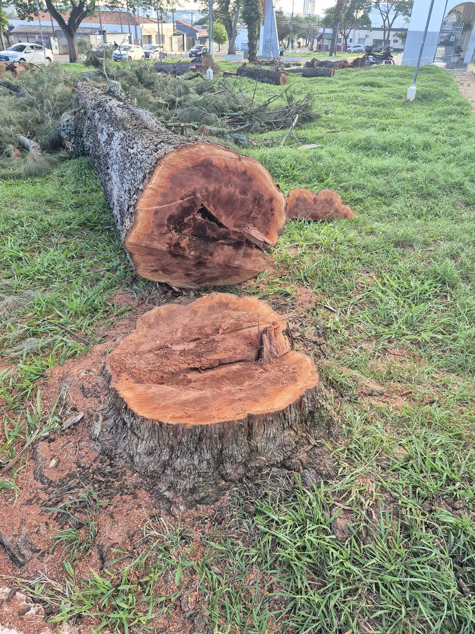 Nesta quarta-feira (25), o Jornal Integração On-line recebeu informação e fotos do ex-vereador Ademir Cleto, presidente do grupo Alerta, entidade que defende ações contra o meio ambiente e monitora a poluição em Tatuí. Segundo consta, a Prefeitura Municipal cortou árvores plantadas há mais de anos, na Praça Santa Cruz. Ademir enviou cópia da mensagem, recebida pelo Alerta, e o interlocutor, morador do bairro, informa que “a igreja pediu para a prefeitura cortar as árvores doentes e ocas”. Com ar de indignação, o munícipe informa que “foram lá e cortaram tudo. Inclusive, as árvores saudáveis”.