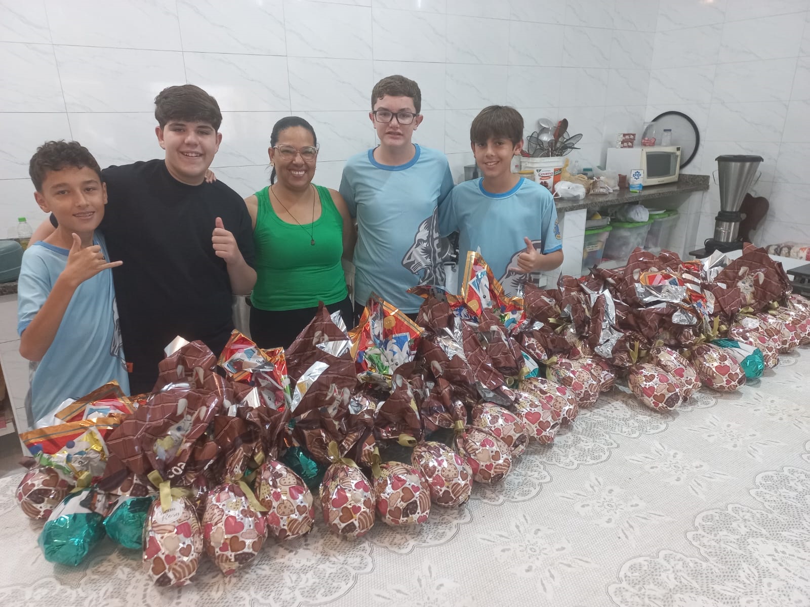 PÁSCOA SOLIDÁRIA – Dia 1º de abril, integrantes do Lions Clube. LEO e CUB (Leõezinhos) entregaram ovos de Páscoa para crianças do Recanto Betel, em Tatuí. E, dia 2 de abril, foram contempladas as crianças da Paróquia Santa Rita de Cássia e Casas Transitórias de Capela do Alto e Cesário Lange. Patrícia Elaine Vieira Conquista (Betel) e o padre Francisco Roberto da Silva recepcionaram os integrantes do clube de serviço, na entrega dos ovos.